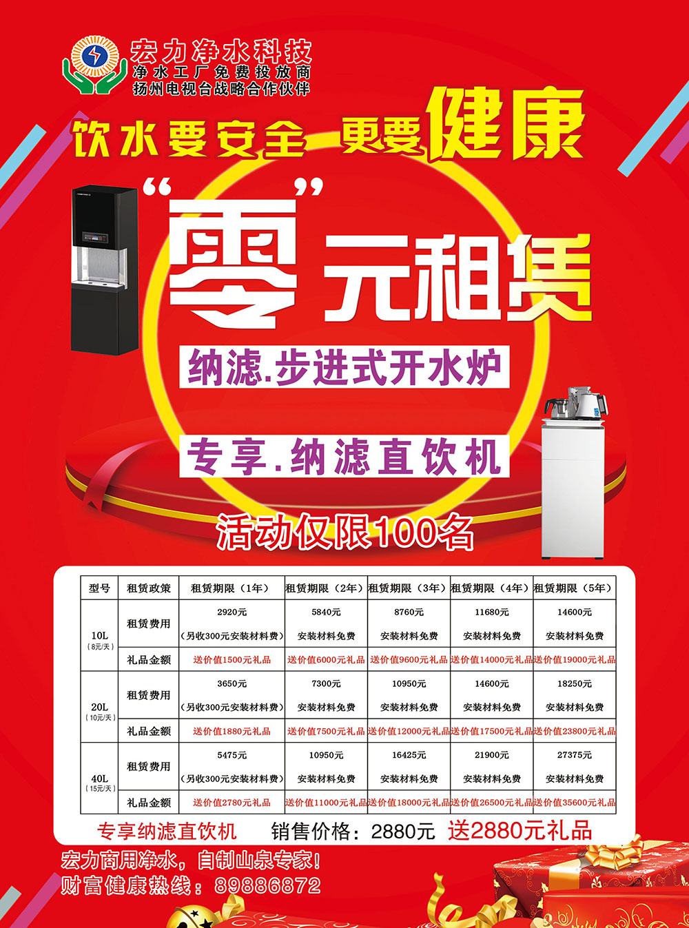 宏力商用净水炉零元租赁